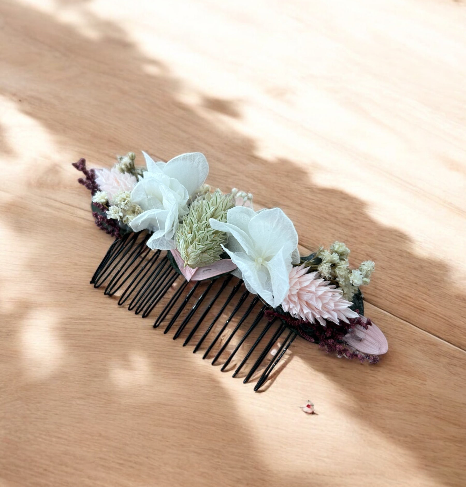 Peinetas florales preservadas personalizadas para novias e invitadas. Son ideales para lucir en eventos y decorar tu cabello.