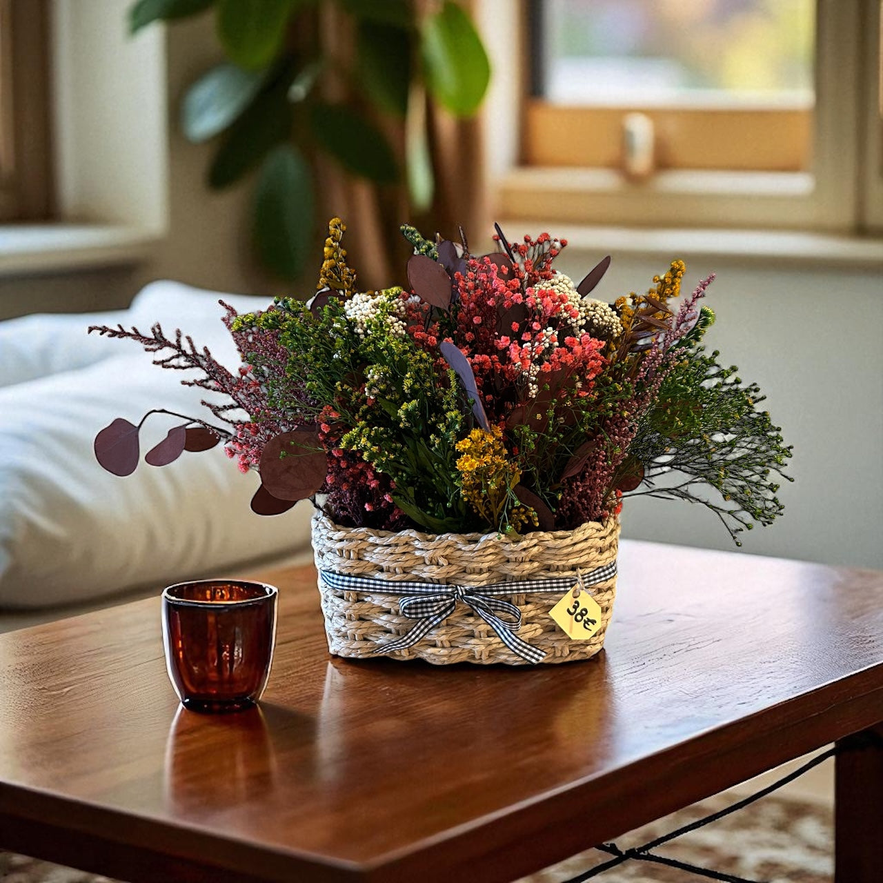 Una cesta con flores preservada, un pedacito de otoño para alegrarte los días.