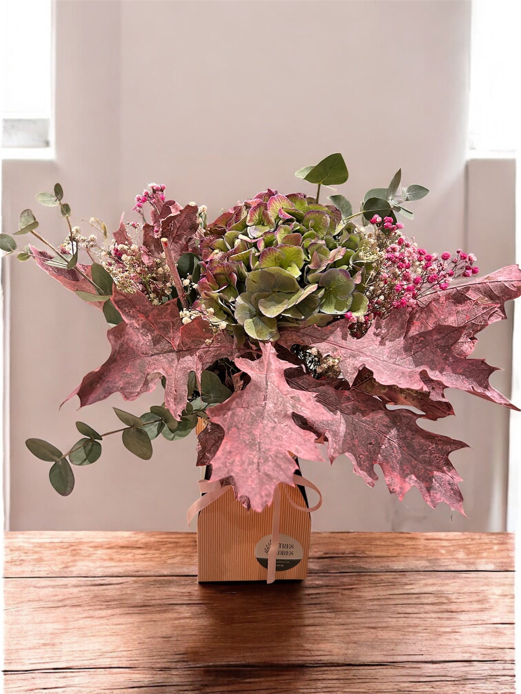 Bouquet seco con hortensia, ideal para decorar cualquier rincón.