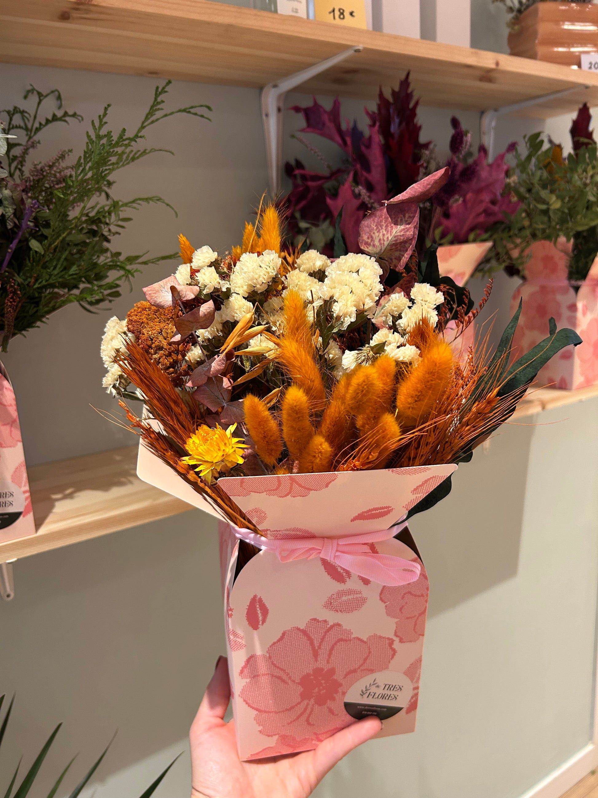 Bouquet seco con funda con tonos otoñales para dar calidez a tu hogar.