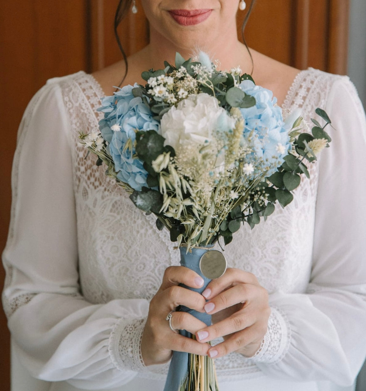 Creamos tu ramo de novia preservado personalizado. Este ramo puede ser de gran inspiración si te encanta la mezcla de blancos y azules.