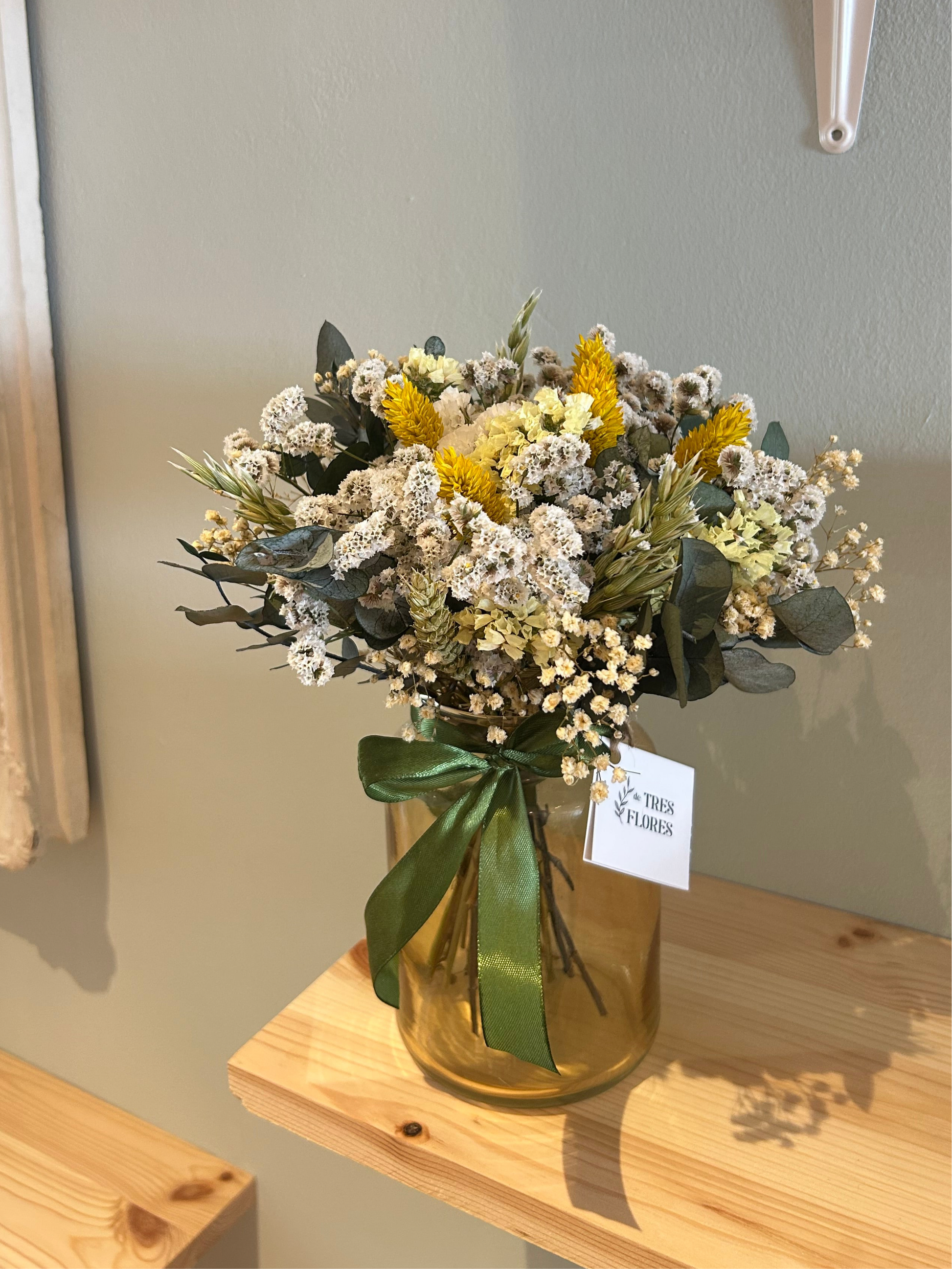 Composición: eucalipto, limonium amarillo, limonium blanco, paniculata blanca.