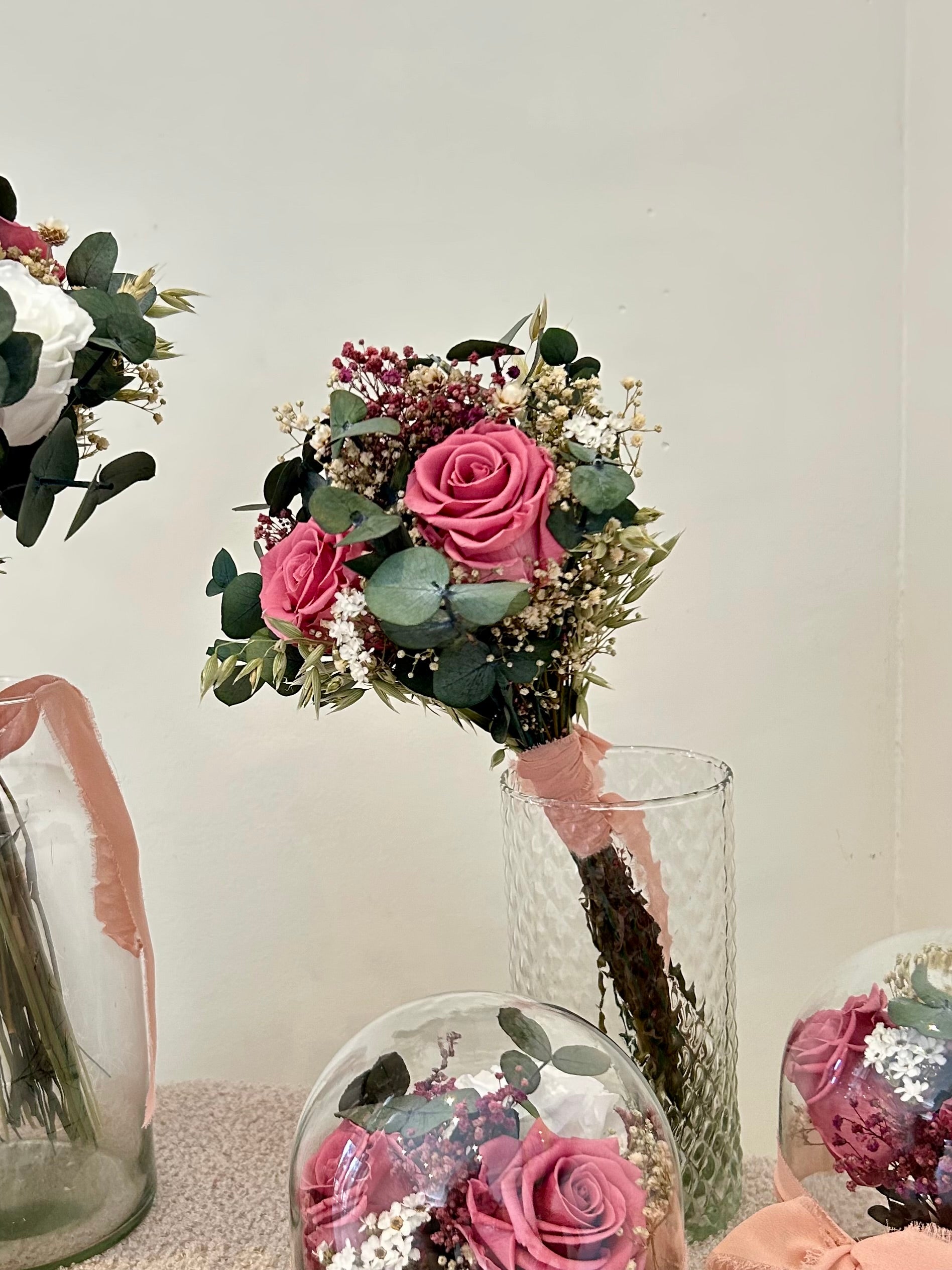 Creamos réplicas personalizadas de tu ramo de novia, capturando cada detalle y emoción de ese día tan especial. Disponible en tamaño pequeño o mediano, es el complemento perfecto para conservar tu recuerdo más bonito intacto en el tiempo. 🤍