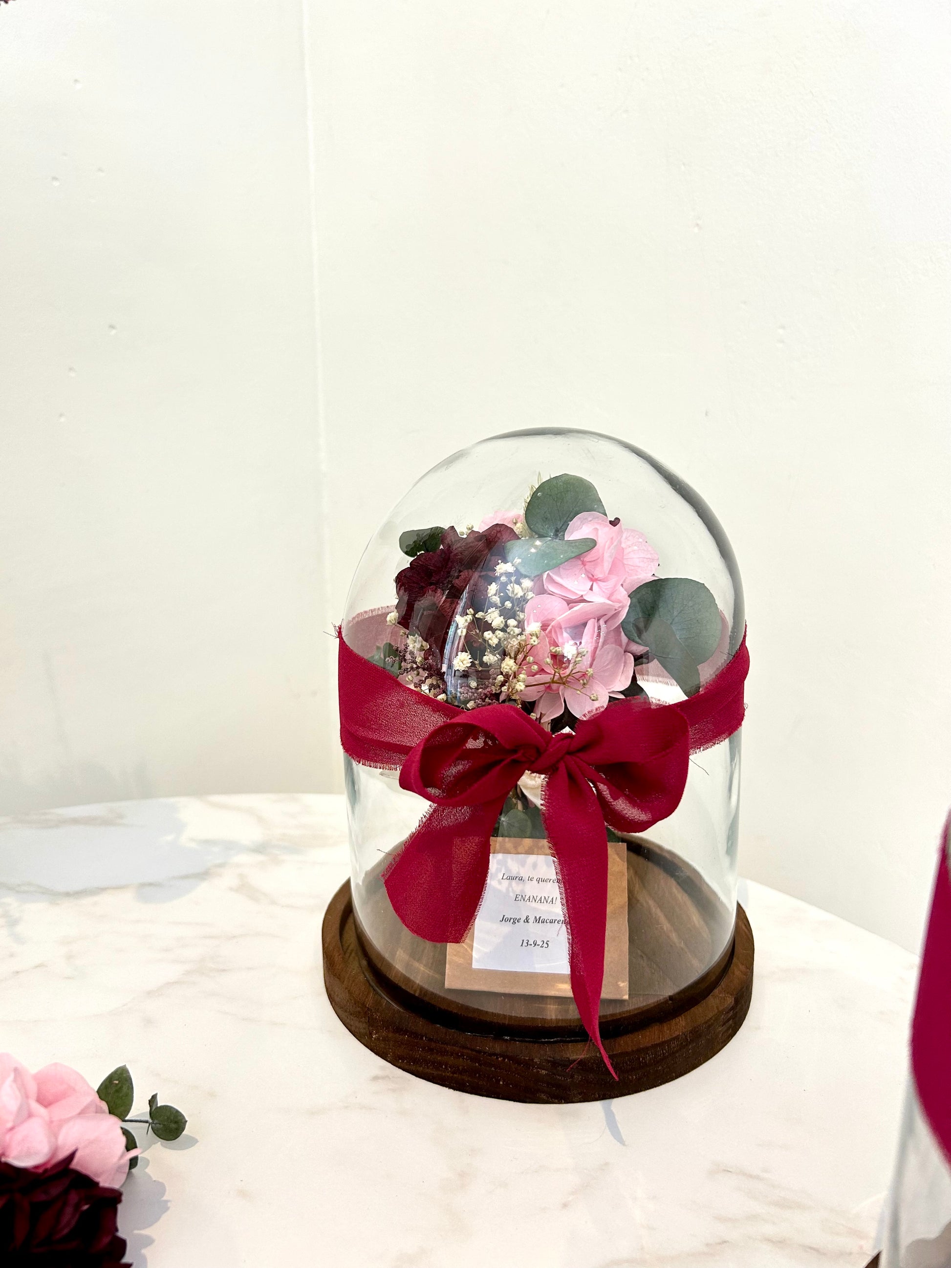 Si ya has elegido tu ramo de novia (apartado Ramos de Novia), la réplica dentro de la cúpula se realizará a juego con tu ramo, asegurando un recuerdo único y armonioso. 🌸