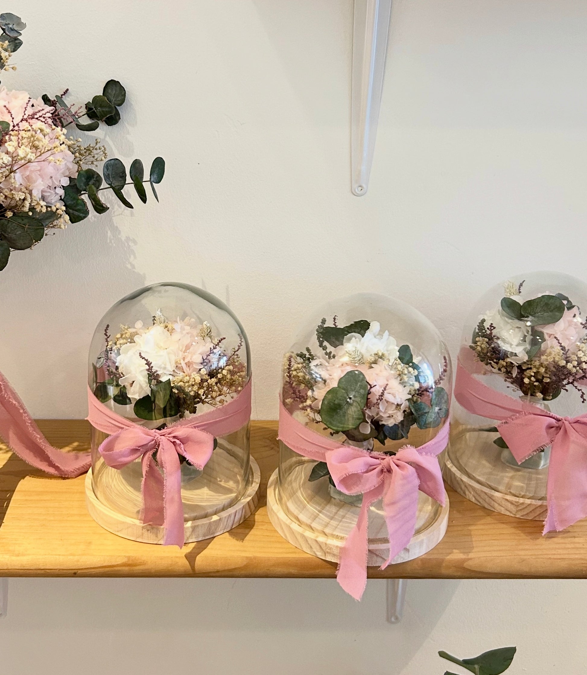 Conserva la magia de tu boda con nuestra cúpula que contiene una réplica de tu ramo de novia, hecha con flores preservadas. Disponible en tamaño pequeño o mediano, es un tesoro eterno que captura la belleza de tu día más especial. ✨💖