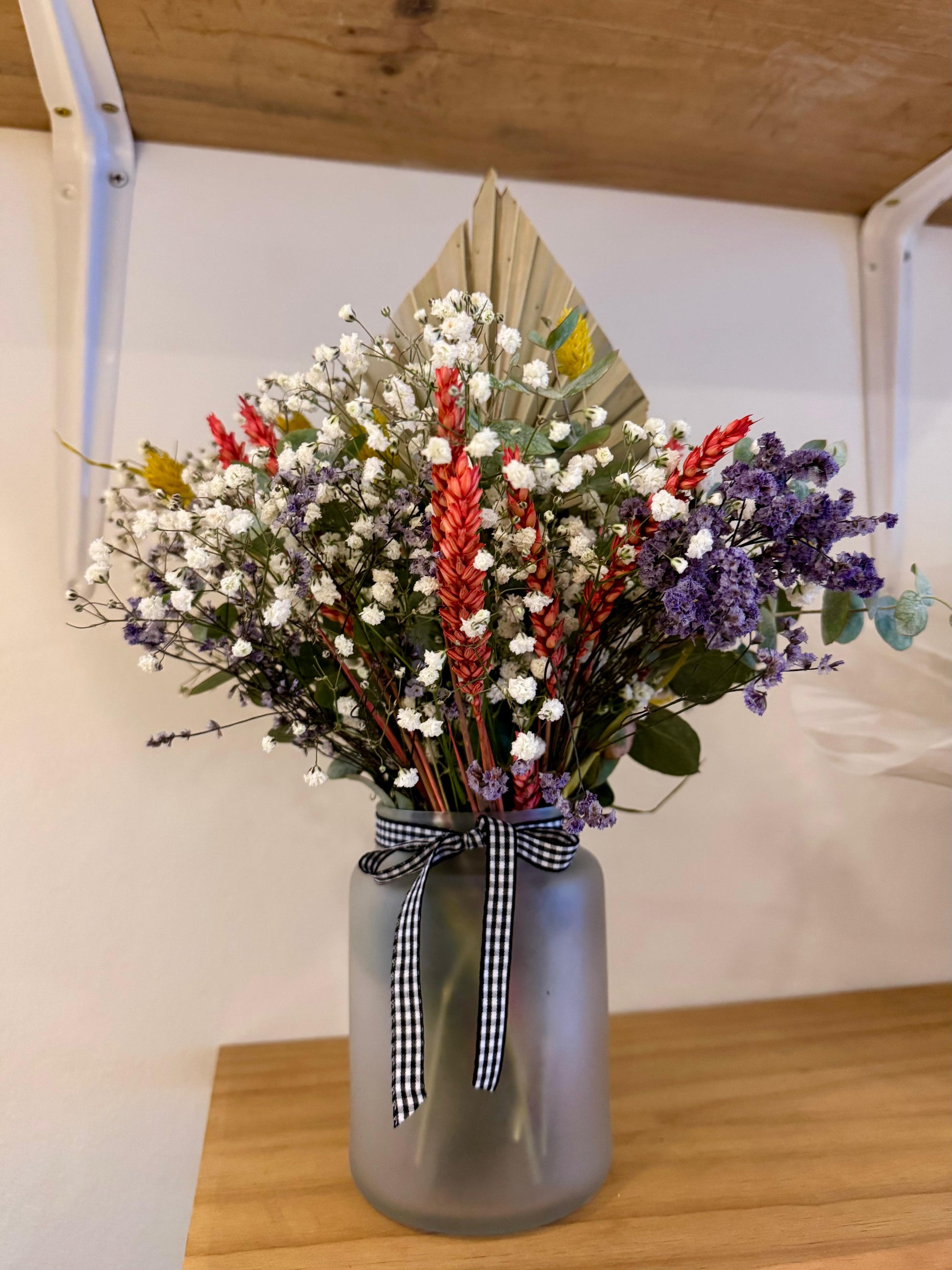 Este pequeño ramo de flores secas aporta estilo y encanto a cualquier rincón.